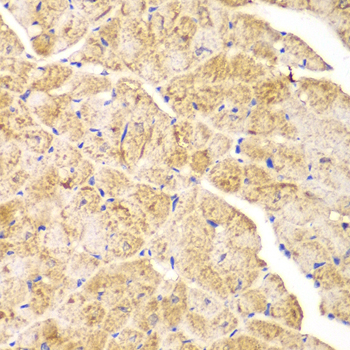 Immunohistochemistry of paraffin-embedded mouse heart using ACTN1 antibody at dilution of 1:100 (400x lens).