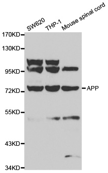 Western blot analysis of extracts of various cell lines, using APP antibody.