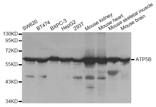This gene encodes a subunit of mitochondrial ATP synthase. Mitochondrial ATP synthase catalyzes ATP synthesis, utilizing an electrochemical gradient of protons across the inner membrane during oxidative phosphorylation. ATP synthase is composed of two linked multi-subunit complexes: the soluble catalytic core, F1, and the membrane-spanning component, Fo, comprising the proton channel. The catalytic portion of mitochondrial ATP synthase consists of 5 different subunits (alpha, beta, gamma, delta, and epsilon) assembled with a stoichiometry of 3 alpha, 3 beta, and a single representative of the other 3. The proton channel consists of three main subunits (a, b, c). This gene encodes the beta subunit of the catalytic core.