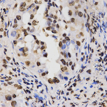 Immunohistochemistry of paraffin-embedded human lung cancer tissue using H3R17me2a antibody at dilution of 1:200 (x400 lens)