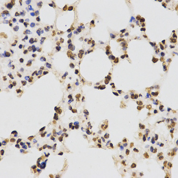 Immunohistochemistry of paraffin-embedded mouse lung tissue using H3R17me2a antibody at dilution of 1:200 (x400 lens)