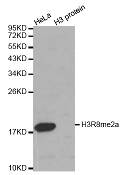 | Immunogen | A synthetic methylated peptide corresponding to residues surrounding R8 of human histone H3 |
