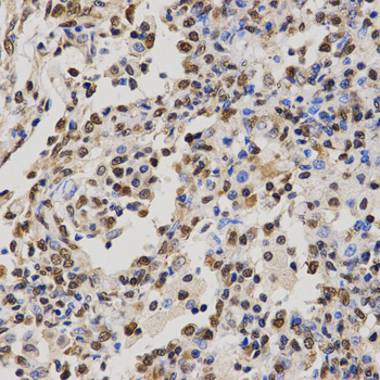 Immunohistochemistry of paraffin-embedded human lung cancer tissue using H4R3me2a antibody at dilution of 1:200 (x400 lens)