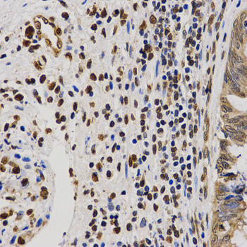 Immunohistochemistry of paraffin-embedded human rectal cancer tissue using H4R3me2a antibody at dilution of 1:200 (x400 lens)