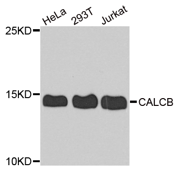 Western blot analysis of extract of various cells, using CALCB antibody.