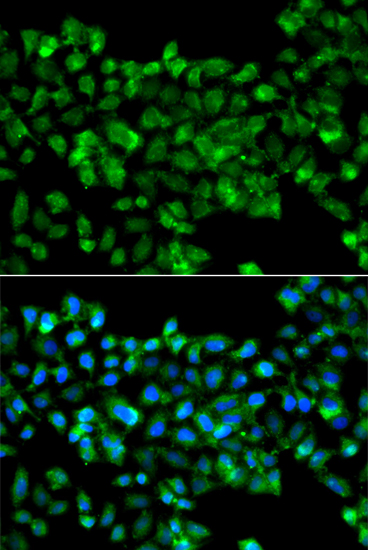 Immunofluorescence analysis of A549 cell using CBR3 antibody. Blue: DAPI for nuclear staining.