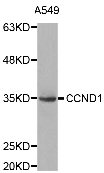 CCND1 (cyclin D1), also known as PRAD1 or BCL1, belongs to the highly conserved cyclin family, whose members are characterized by a dramatic periodicity in protein abundance throughout the cell cycle. CCND1 forms a complex with and functions as a regulatory subunit of CDK4 or CDK6, whose activity is required for cell cycle G1/S transition. The CCND1 gene, located on 11q13 has been reported to be overexpressed in mantle cell lymphoma (MCL) due to the chromosomal translocation. CCND1 has been shown to interact with tumor suppressor protein Rb and the expression of this gene is regulated positively by Rb. Over-expression of CCND1 is known to correlate with the early onset of cancer and risk of tumor progression and metastasis.