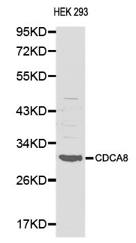 Western blot analysis of HEX293 cell lysate using CDCA8 antibody.