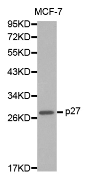 p27 Kip1 is a member of the Cip/Kip family of cyclin-dependent kinase inhibitors. Like its relatives, p57 Kip2 and p21 Waf1/Cip1, the ability to enforce the G1 restriction point is derived from its inhibitory binding to CDK2/cyclin E and other CDK/cyclin complexes. Expression levels of p27 are upregulated in quiescent cells and in cells treated with cAMP or other negative cell cycle regulators. Downregulation of p27 can be induced by treatment with interleukin 2 or other mitogens; this involves phosphorylation of p27 and its degradation by the ubiquitin-proteasome pathway (1-4).