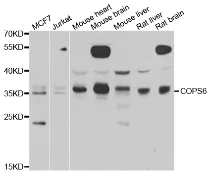 The protein encoded by this gene is one of the eight subunits of COP9 signalosome, a highly conserved protein complex that functions as an important regulator in multiple signaling pathways. The structure and function of COP9 signalosome is similar to that of the 19S regulatory particle of 26S proteasome. COP9 signalosome has been shown to interact with SCF-type E3 ubiquitin ligases and act as a positive regulator of E3 ubiquitin ligases. This protein belongs to translation initiation factor 3 (eIF3) superfamily. It is involved in the regulation of cell cycle and likely to be a cellular cofactor for HIV-1 accessory gene product Vpr.