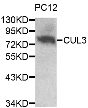 Western blot analysis of extracts of PC12 cell line, using CUL3 antibody.