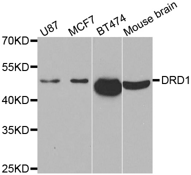 Western blot analysis of extracts of various cell lines, using DRD1 antibody.