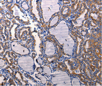 Immunohistochemistry of paraffin-embedded human thyroid cancer tissue using DRD1antibody.