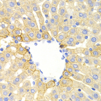 Immunohistochemistry of paraffin-embedded rat liver using DRD1 antibody at dilution of 1:200 (400x lens).