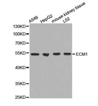 ECM1 (extracellular matrix protein 1), also known as secretory component p85, is a secreted glycoprotein that is essential for the proper structure and function of the skin. It is widely expressed and localizes to the extracellular matrix. ECM1 binds to a variety of extracellular matrix components, including Perlecan, Fibulin and matrix metalloproteinase-9 (MMP-9), and participates in the structural organization of the dermis. In addition, ECM1 enhances the association of Collagen Type IV with Laminin 332 suggesting that it is a key player in interstitial dermis and the dermal-epidermal junction. Mutations in the gene encoding ECM1 result in the autosomal recessive disorder lipoid proteinosis (LiP). LiP is characterized by hyalinization of the dermis and reduplication of the basement membrane of the skin. LiP patients exhibit thickening of the skin and mucosae. Four splice variants (known as ECM1a-ECM1d) exist for ECM1.