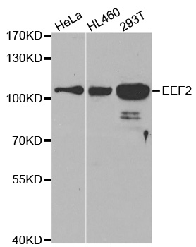 Eukaryotic elongation factor 2 (eEF2) catalyzes the translocation of peptidyl-tRNA from the A site to the P site on the ribosome. It has been shown that phosphorylation of eEF2 at threonine 56 by eEF2 kinase inhibits its activity (1-4). eEF2 kinase is normally dependent on Ca2+ ions and calmodulin (5,6). eEF2 kinase can also be activated by PKA in response to elevated cAMP levels (7-9), which are generally increased in stress- or starvation-related conditions. A variety of treatments known to raise intracellular Ca2+ or cAMP levels have been shown to result in increased phosphorylation of eEF2, and thus to inhibit peptide-chain elongation. The inactive phosphorylated eEF2 can be converted to its active nonphosphorylated form by a protein phosphatase, most likely a form of protein phosphatase-2A (PP-2A). Insulin, which activates protein synthesis in a wide range of cell types, induces rapid dephosphorylation of eEF2 through mTOR signaling and may involve modulation of the activity of the PP-2A or the eEF2 kinase or both (10).