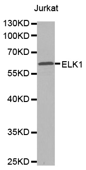 E twenty-six (ETS)-like transcription factor 1, also known as ELK1, is a member of the Ets family of transcription factors and of the ternary complex factor (TCF) subfamily. It is targeted in the nucleus by three major MAP kinase pathways as well as the CaMKII pathway. phosphorylation of nuclear Elk1 enhances its ability to bind DNA at serum response elements and stimulate transcription of immediate early genes. Elk1 plays important roles in various contexts, including long-term memory formation, drug addiction, Alzheimer’s disease, down syndrome, breast cancer, and depression. This antibody got an 62kd band in western blotting maybe duo to its phosphorylation.