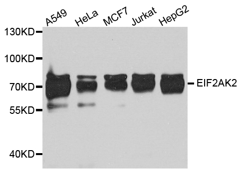 Western blot analysis of extract of various cells, using Eif2ak2 antibody.