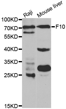 This gene encodes the vitamin K-dependent coagulation factor X of the blood coagulation cascade. This factor undergoes multiple processing steps before its preproprotein is converted to a mature two-chain form by the excision of the tripeptide RKR. Two chains of the factor are held together by 1 or more disulfide bonds; the light chain contains 2 EGF-like domains, while the heavy chain contains the catalytic domain which is structurally homologous to those of the other hemostatic serine proteases. The mature factor is activated by the cleavage of the activation peptide by factor IXa (in the intrisic pathway), or by factor VIIa (in the extrinsic pathway). The activated factor then converts prothrombin to thrombin in the presence of factor Va, Ca+2, and phospholipid during blood clotting. Mutations of this gene result in factor X deficiency, a hemorrhagic condition of variable severity. [provided by RefSeq, Jul 2008]