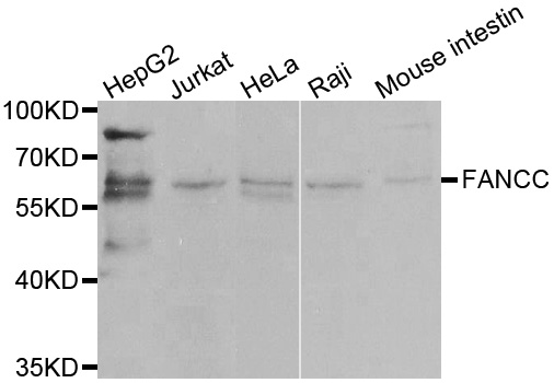 The Fanconi anemia complementation group (FANC) currently includes FANCA, FANCB, FANCC, FANCD1 (also called BRCA2), FANCD2, FANCE, FANCF, FANCG, FANCI, FANCJ (also called BRIP1), FANCL, FANCM and FANCN (also called PALB2). The previously defined group FANCH is the same as FANCA. Fanconi anemia is a genetically heterogeneous recessive disorder characterized by cytogenetic instability, hypersensitivity to DNA crosslinking agents, increased chromosomal breakage, and defective DNA repair. The members of the Fanconi anemia complementation group do not share sequence similarity; they are related by their assembly into a common nuclear protein complex. This gene encodes the protein for complementation group C. [provided by RefSeq, Jul 2008]