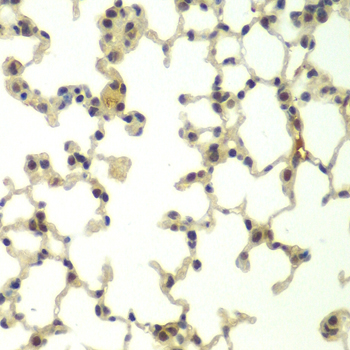 Immunohistochemistry of paraffin-embedded mouse lung using FBXW11 antibody at dilution of 1:100 (40x lens).