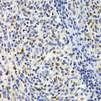 Immunohistochemistry of paraffin-embedded mouse lymph gland using GEMIN2 antibody at dilution of 1:200 (400x lens).