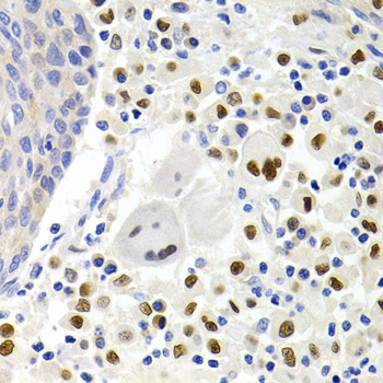 Immunohistochemistry of paraffin-embedded human metrocarcinoma using GEMIN2 antibody at dilution of 1:200 (400x lens).
