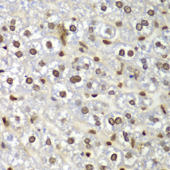 Immunohistochemistry of paraffin-embedded mouse liver using GNB2L1 antibody at dilution of 1:100 (400x lens).