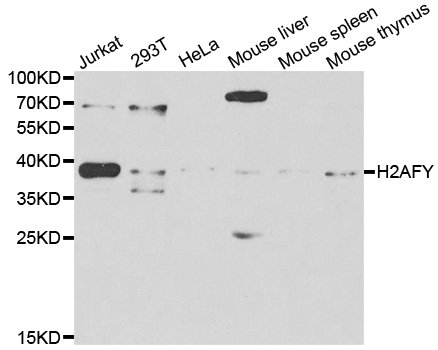 Western blot analysis of extracts of various cell lines, using H2AFY antibody.