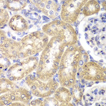 Immunohistochemistry of paraffin-embedded rat liver using HADH antibody at dilution of 1:100 (400x lens).
