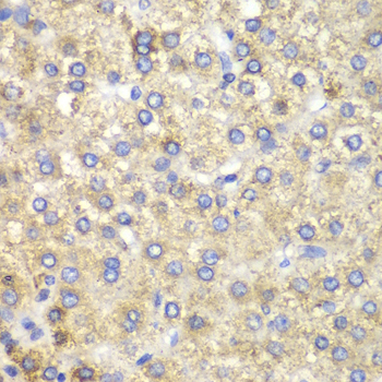 Immunohistochemistry of paraffin-embedded mouse liver using HADH antibody at dilution of 1:100 (400x lens).
