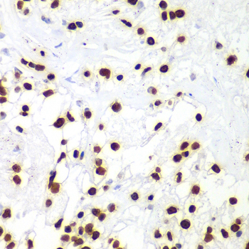 Immunohistochemistry of paraffin-embedded human kidney cancer using HIST3H3 antibody at dilution of 1:100 (400x lens).