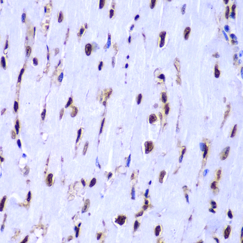 Immunohistochemistry of paraffin-embedded mouse heart using HIST3H3 antibody at dilution of 1:100 (400x lens).