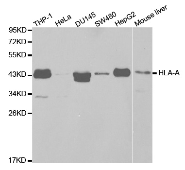 Western blot analysis of extracts of various cell lines, using HLA-A antibody.