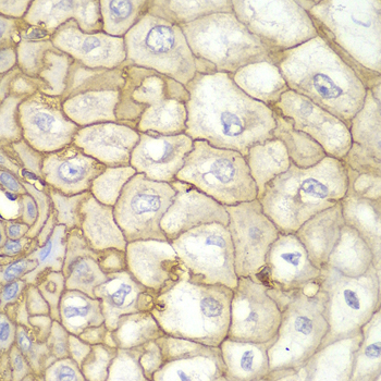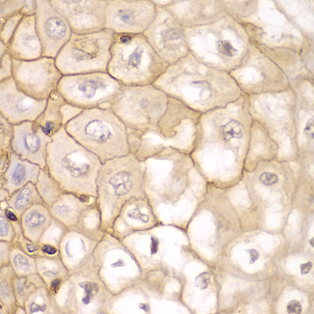 Immunohistochemistry of paraffin-embedded human esophageal using HLA-A antibody at dilution of 1:100 (400x lens).