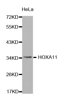 In vertebrates, the genes encoding the class of transcription factors called homeobox genes are found in clusters named A, B, C, and D on four separate chromosomes. Expression of these proteins is spatially and temporally regulated during embryonic development. This gene is part of the A cluster on chromosome 7 and encodes a DNA-binding transcription factor which may regulate gene expression, morphogenesis, and differentiation. This gene is involved in the regulation of uterine development and is required for female fertility. Mutations in this gene can cause radio-ulnar synostosis with amegakaryocytic thrombocytopenia.