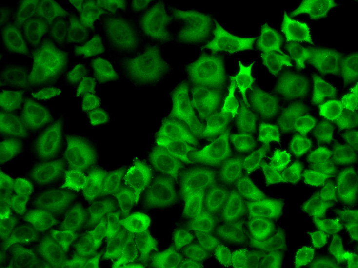 Immunofluorescence analysis of U2OS cell using HSP90AA1 antibody.