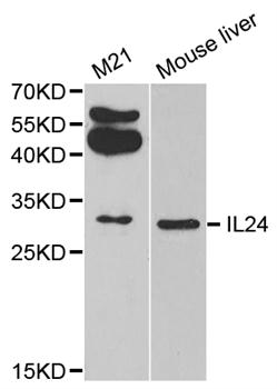 This gene encodes a member of the IL10 family of cytokines. It was identified as a gene induced during terminal differentiation in melanoma cells. The protein encoded by this gene can induce apoptosis selectively in various cancer cells. Overexpression of this gene leads to elevated expression of several GADD family genes, which correlates with the induction of apoptosis. The phosphorylation of mitogen-activated protein kinase 14 (MAPK7/P38), and heat shock 27kDa protein 1 (HSPB2/HSP27) are found to be induced by this gene in melanoma cells, but not in normal immortal melanocytes. Alternatively spliced transcript variants encoding distinct isoforms have been reported. [provided by RefSeq, Jul 2008]