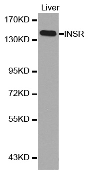 Western blot analysis of extracts of human liver cell line, using INSR antibody.
