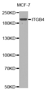 Integrins are heterodimers comprised of alpha and beta subunits, that are noncovalently associated transmembrane glycoprotein receptors. Different combinations of alpha and beta polypeptides form complexes that vary in their ligand-binding specificities. Integrins mediate cell-matrix or cell-cell adhesion, and transduced signals that regulate gene expression and cell growth. This gene encodes the integrin beta 4 subunit, a receptor for the laminins. This subunit tends to associate with alpha 6 subunit and is likely to play a pivotal role in the biology of invasive carcinoma. Mutations in this gene are associated with epidermolysis bullosa with pyloric atresia. Multiple alternatively spliced transcript variants encoding distinct isoforms have been found for this gene. [provided by RefSeq, Jul 2008]