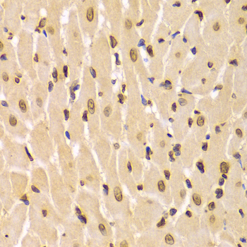 Immunohistochemistry of paraffin-embedded Rat heart using LMNA antibody at dilution of 1:100 (x400 lens).