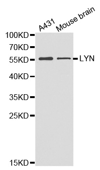 Lyn, one of the Src family members, is predominantly expressed in hematopoietic cells (1). Two tyrosine residues have been reported to play a crucial role in the regulation of protein tyrosine kinases of the Src family. Autophosphorylation of Tyr396 (equivalent to Tyr416 of Src), located in the catalytic domain, correlates with enzyme activation. Csk-mediated phosphorylation of the carboxy-terminal Tyr507 (equivalent to Tyr527 of Src) inactivates the kinase. Tyrosine phosphorylation and activation of Lyn occurs upon association with cell surface receptors such as the B cell Ag receptor (BCR) and CD40 (2-4). Studies using knockout mice have shown that the net effect of Lyn deficiency is to render B cells hypersensitive to BCR stimulation (5-7), suggesting that the most critical role for Lyn in vivo is in the down-regulation of B cell responses. Lyn is also involved in controlling the migration and development of specific B cell populations (8).