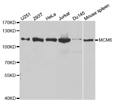 Western blot analysis of extracts of various cell lines, using MCM6 antibody.