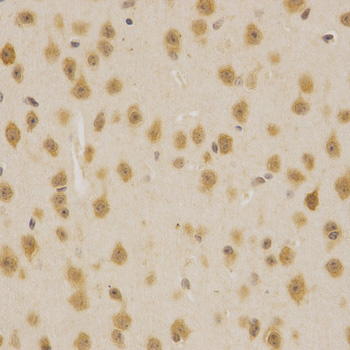 Immunohistochemistry of paraffin-embedded mouse brain using MDM2 antibody at dilution of 1:200 (x400 lens).