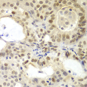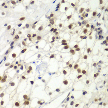 Immunohistochemistry of paraffin-embedded human kidney cancer using MSH6 antibody at dilution of 1:100 (400x lens).