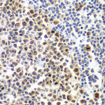 Immunohistochemistry of paraffin-embedded human amygdalitis using MSH6 antibody at dilution of 1:100 (400x lens).