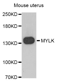 Western blot analysis of extracts of Mouse uterus, using MYLK antibody.