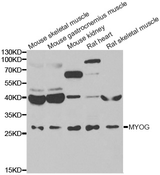 Myogenin is a muscle-specific transcription factor that can induce myogenesis in a variety of cell types in tissue culture. It is a member of a large family of proteins related by sequence homology, the helix-loop-helix (HLH) proteins. It is essential for the development of functional skeletal muscle.
