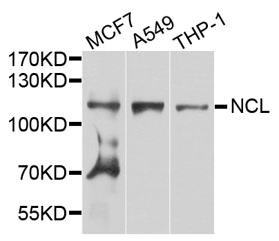Western blot analysis of extract of various cells, using NCL antibody.