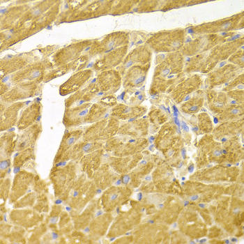 Immunohistochemistry of paraffin-embedded rat heart using NDRG1 antibody at dilution of 1:100 (x400 lens).